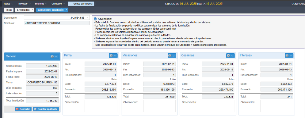 Aquí están las fórmulas importantes para realizar el cálculo correcto de la liquidación definitiva: